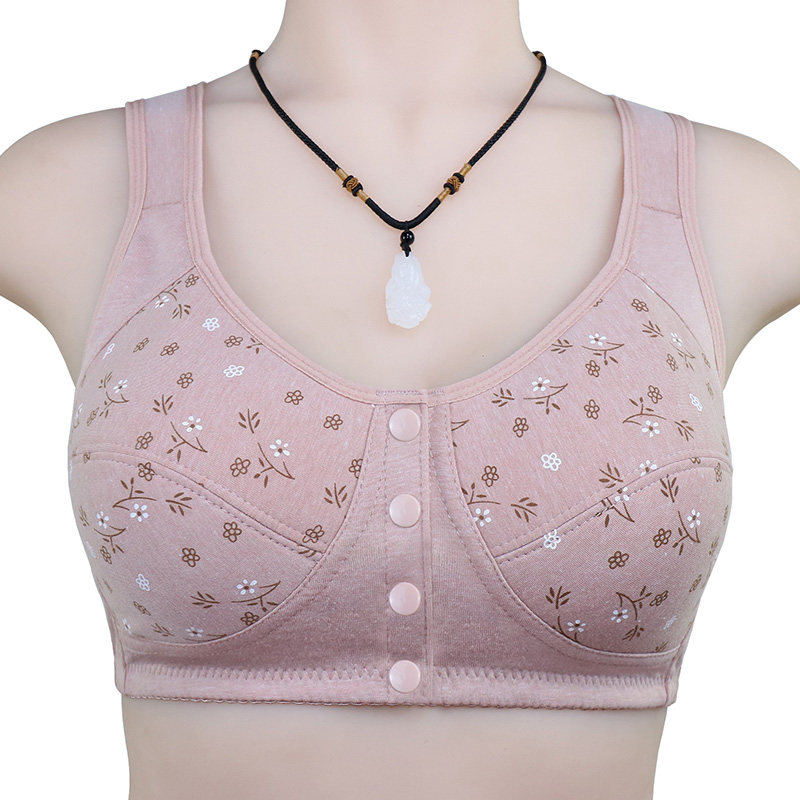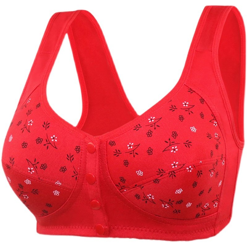 本命年属虎红色文胸背心妈妈内衣女纯棉无钢圈前扣大码中老年胸罩
