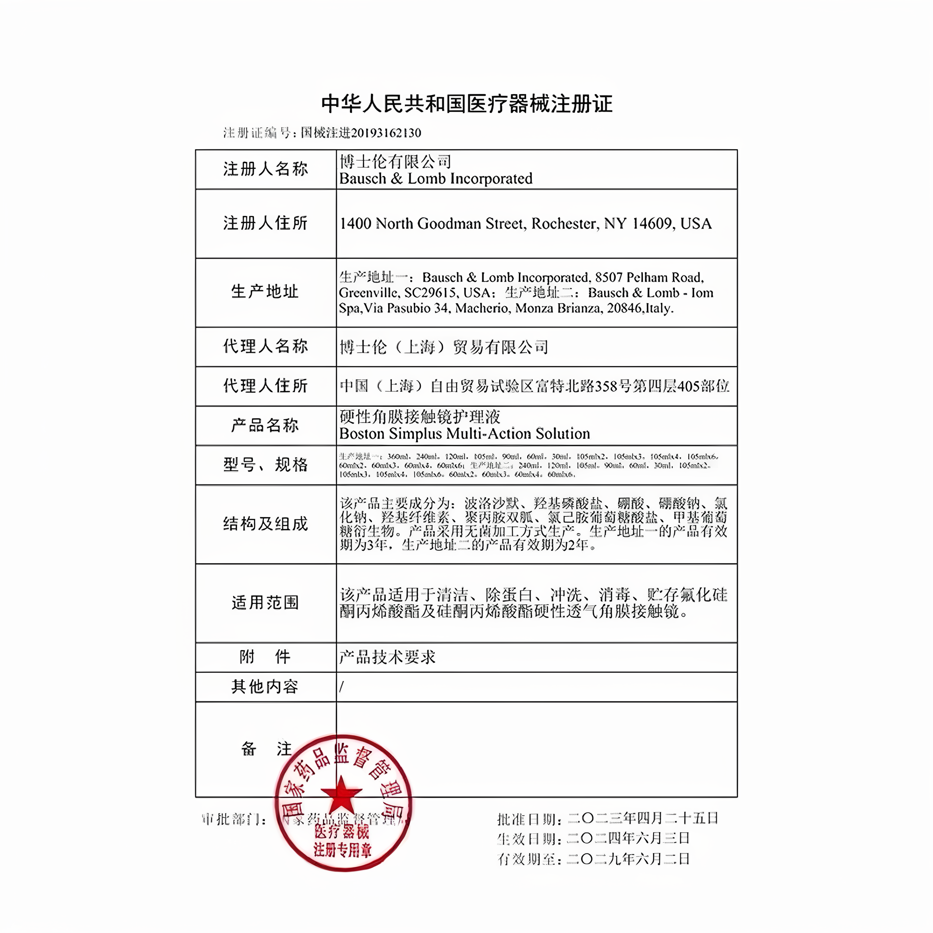 博士伦博视顿新洁先进隐形眼镜护理液硬性角膜塑形镜ok镜润眼液zx