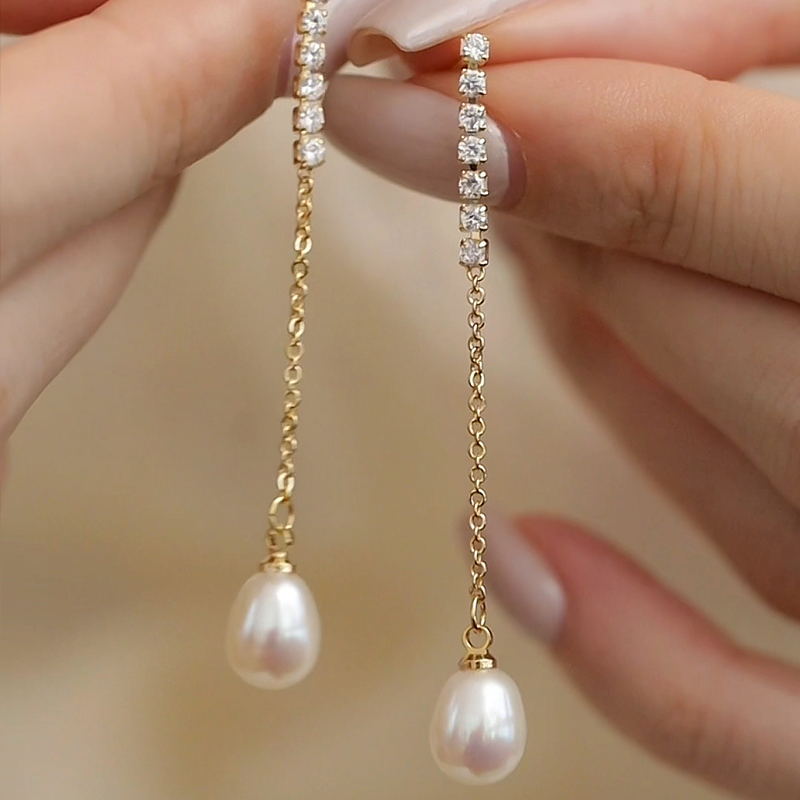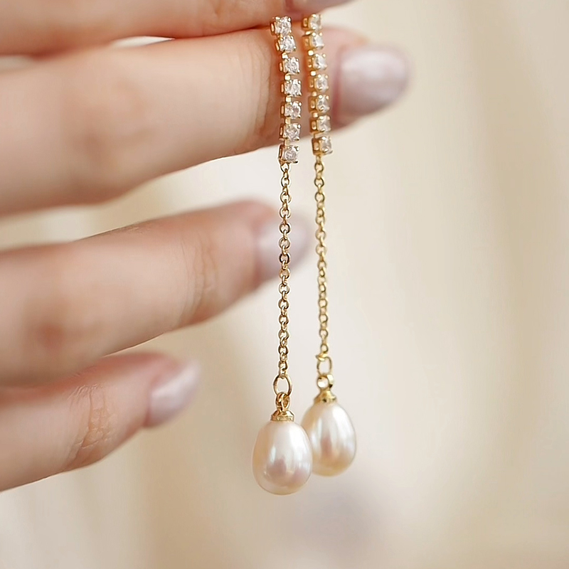 天然淡水水滴形珍珠耳坠女
