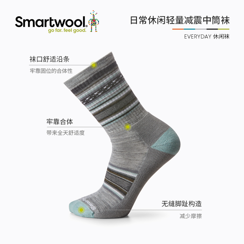 Smartwool男女日常休闲轻量减震中筒袜美利奴羊毛袜户外袜1738