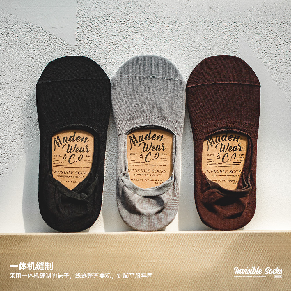 马登工装 美式隐形船袜硅胶防滑短袜纯色透气浅口低帮薄袜子男夏