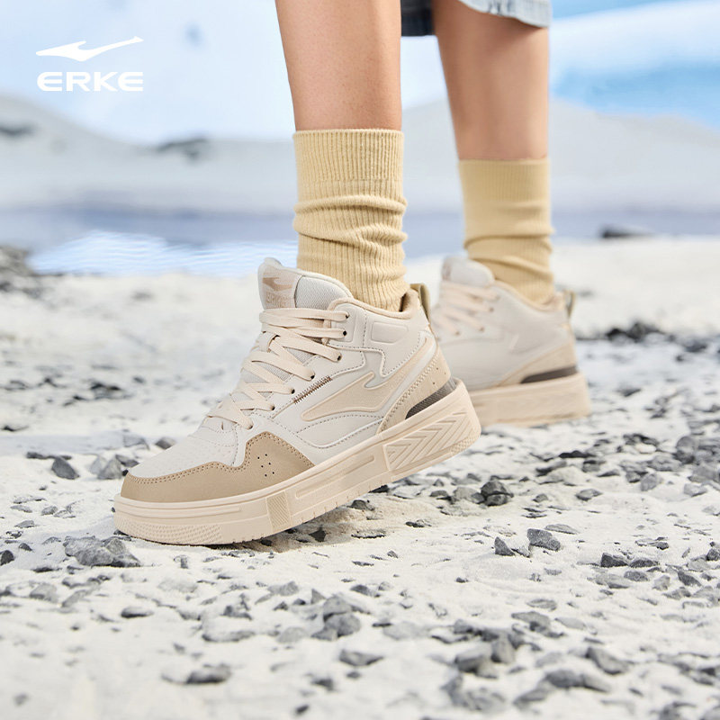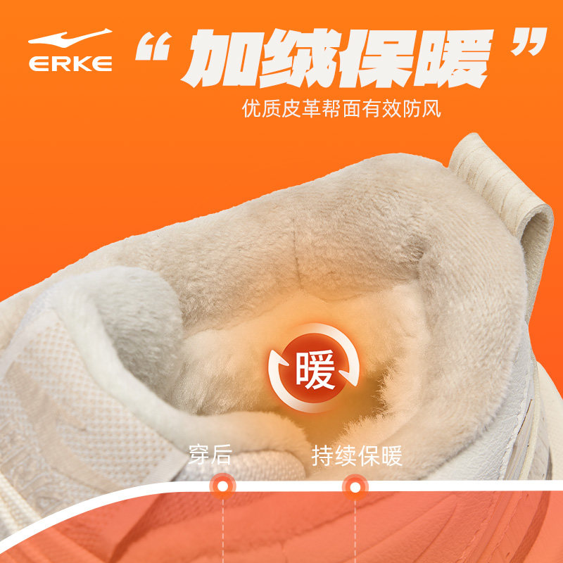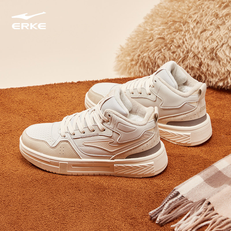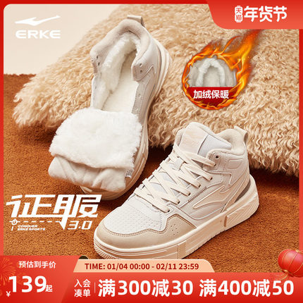征服鸿星尔克板鞋女鞋冬季新款高帮运动鞋厚底增高女款保暖棉鞋子