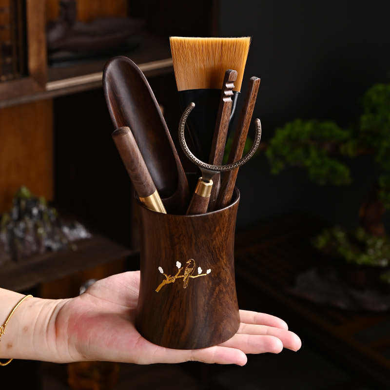 铜木茶道六君子套装大全黑檀实木功夫茶具配件茶杯夹茶针茶勺