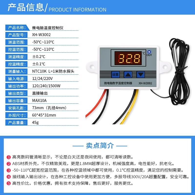 温控开关恒温控制器电子数显智能全自动XH-W3002微电脑数字温控器