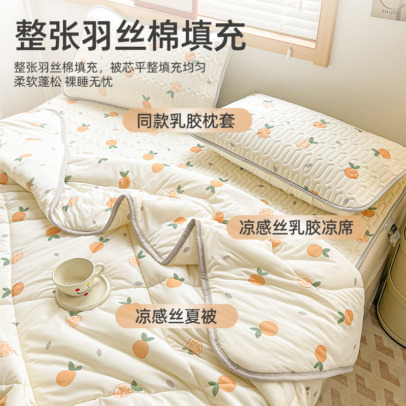 猫人夏季冰丝四件套夏凉被2025年新款夏天乳胶凉席床单床上三件套