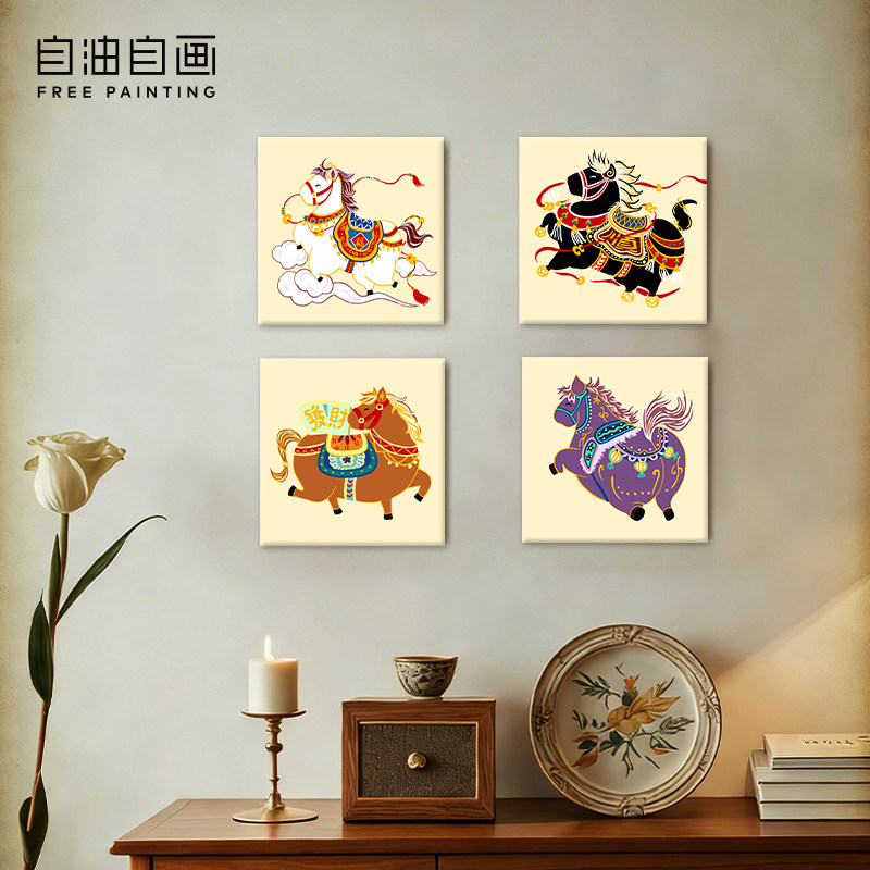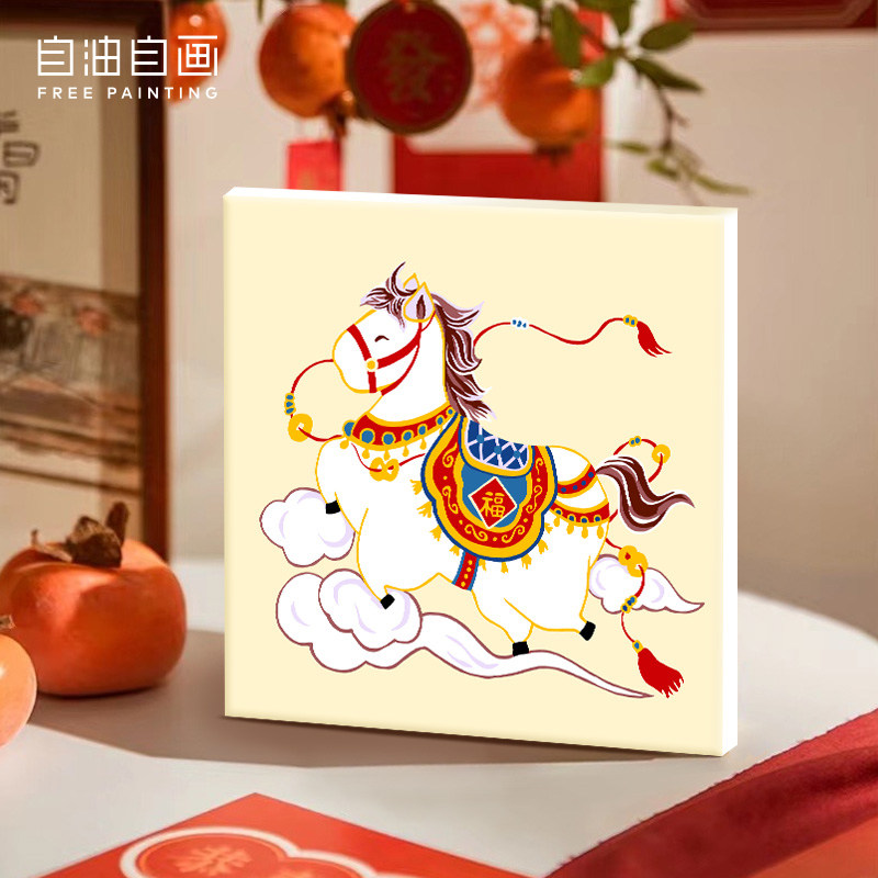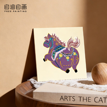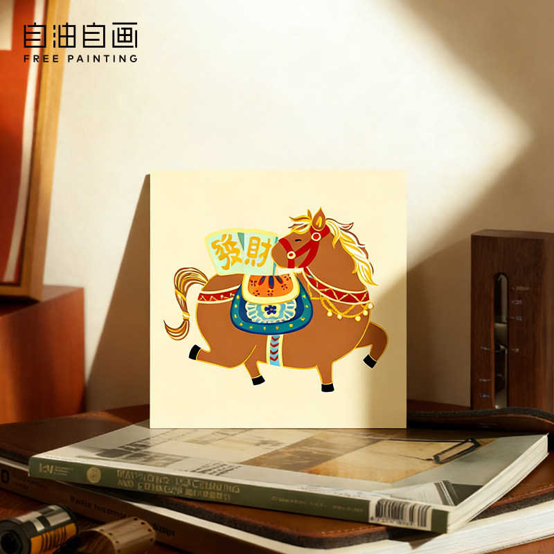 【3件7折】数字油画diy填充手工手绘卡通儿童填色马年亲子摆台画