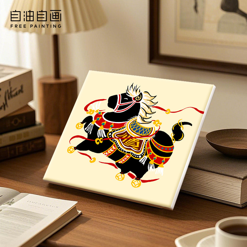 手工填色马年喜庆摆台画
