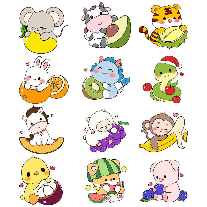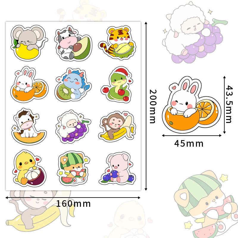 360张/卡通十二生肖贴纸幼儿园可爱奖励学习趣味儿童小贴纸贴画水果杯子装饰防水女孩男孩动物不干胶书桌贴