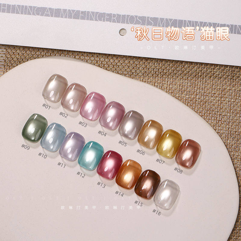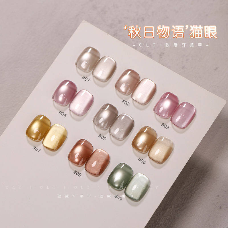 欧琳汀美甲秋日物语猫眼网红同款流行色超闪甲油胶百搭显白光疗胶
