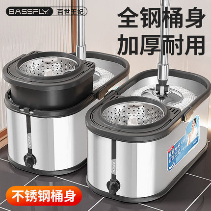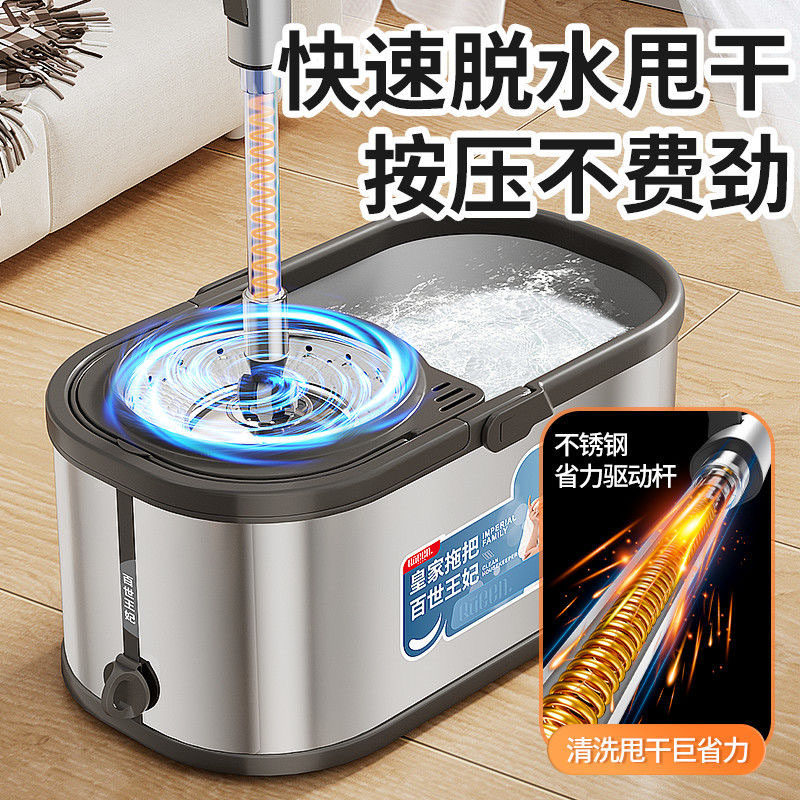 德国优质加厚不锈钢拖把桶2025新款家用懒人旋转一拖净免手洗甩干