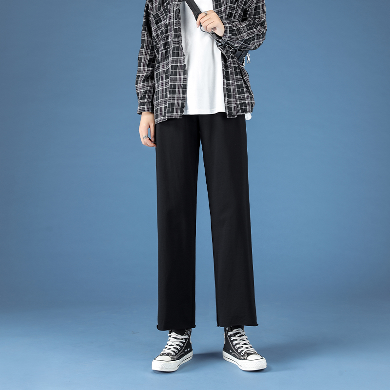 灰色垂感阔腿裤女秋冬季直筒裤加长宽松九分裤小个子加厚休闲卫裤
