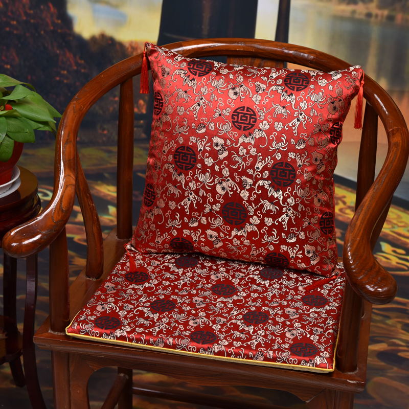 新中式椅垫实木沙发坐垫古典红木餐椅圈椅太师椅海绵垫绸缎定制防