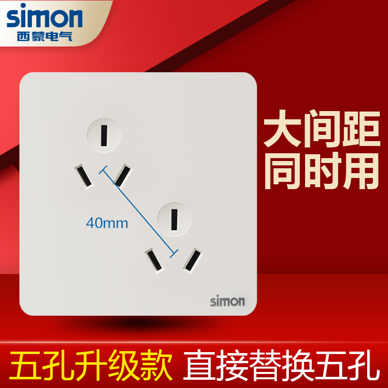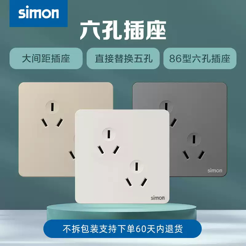 西蒙开关插座错位六6孔86型面板斜6眼两个三孔三三插暗装家用10A