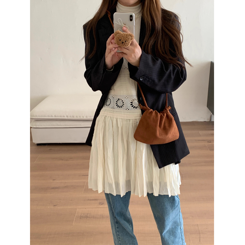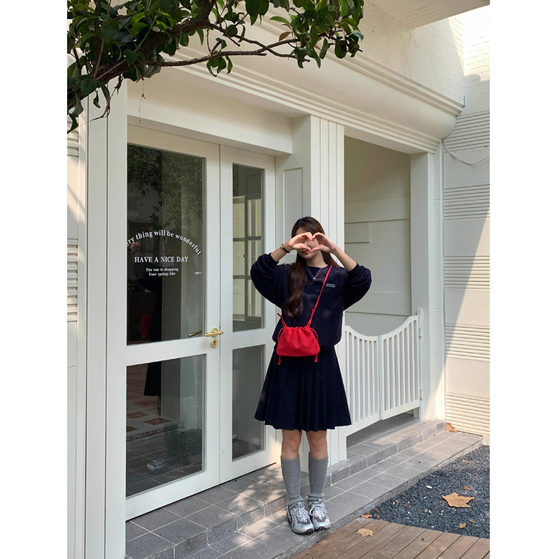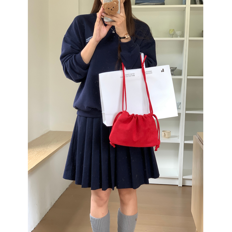 芝士商店~韩国红色小众斜挎包女秋冬手提云朵饺子包抽绳麂皮包包