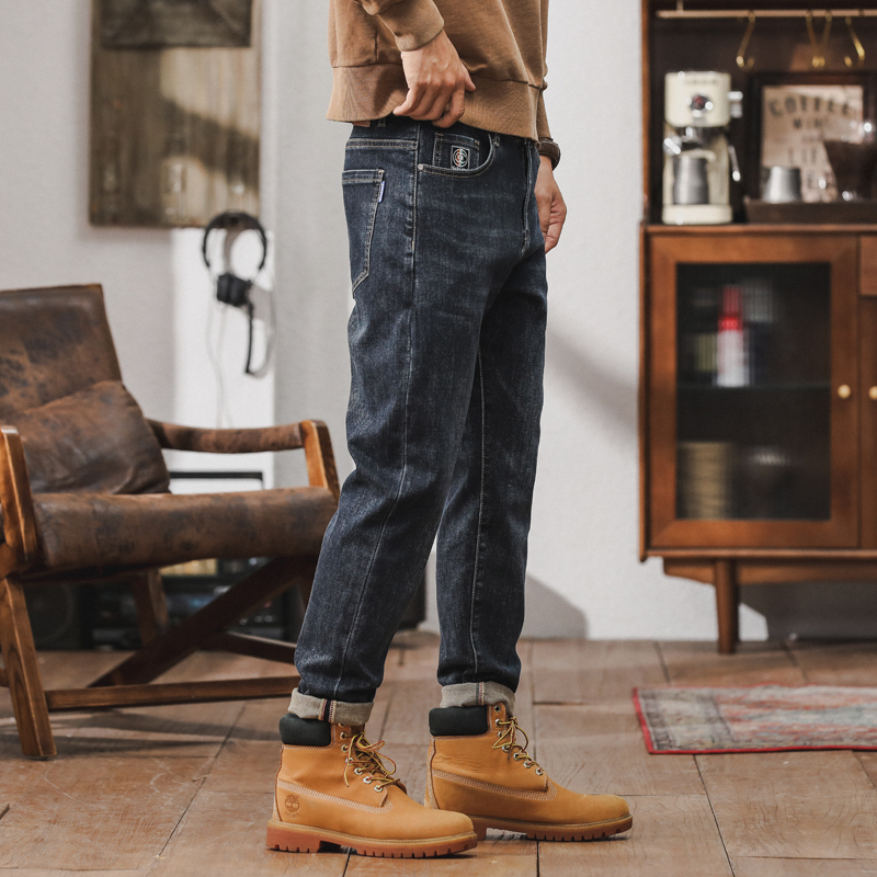秋冬季男士牛仔时尚潮牌休闲弹力怀旧合体微哈小直筒青年牛仔裤男