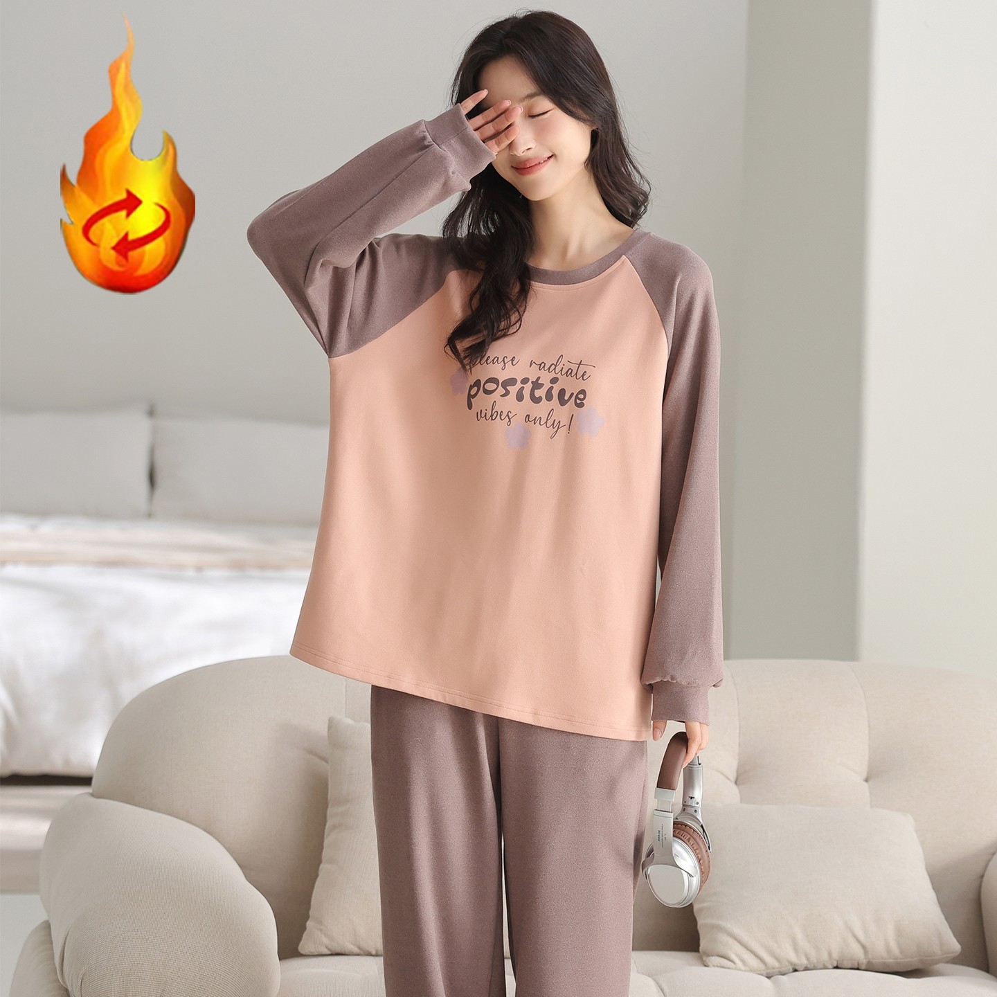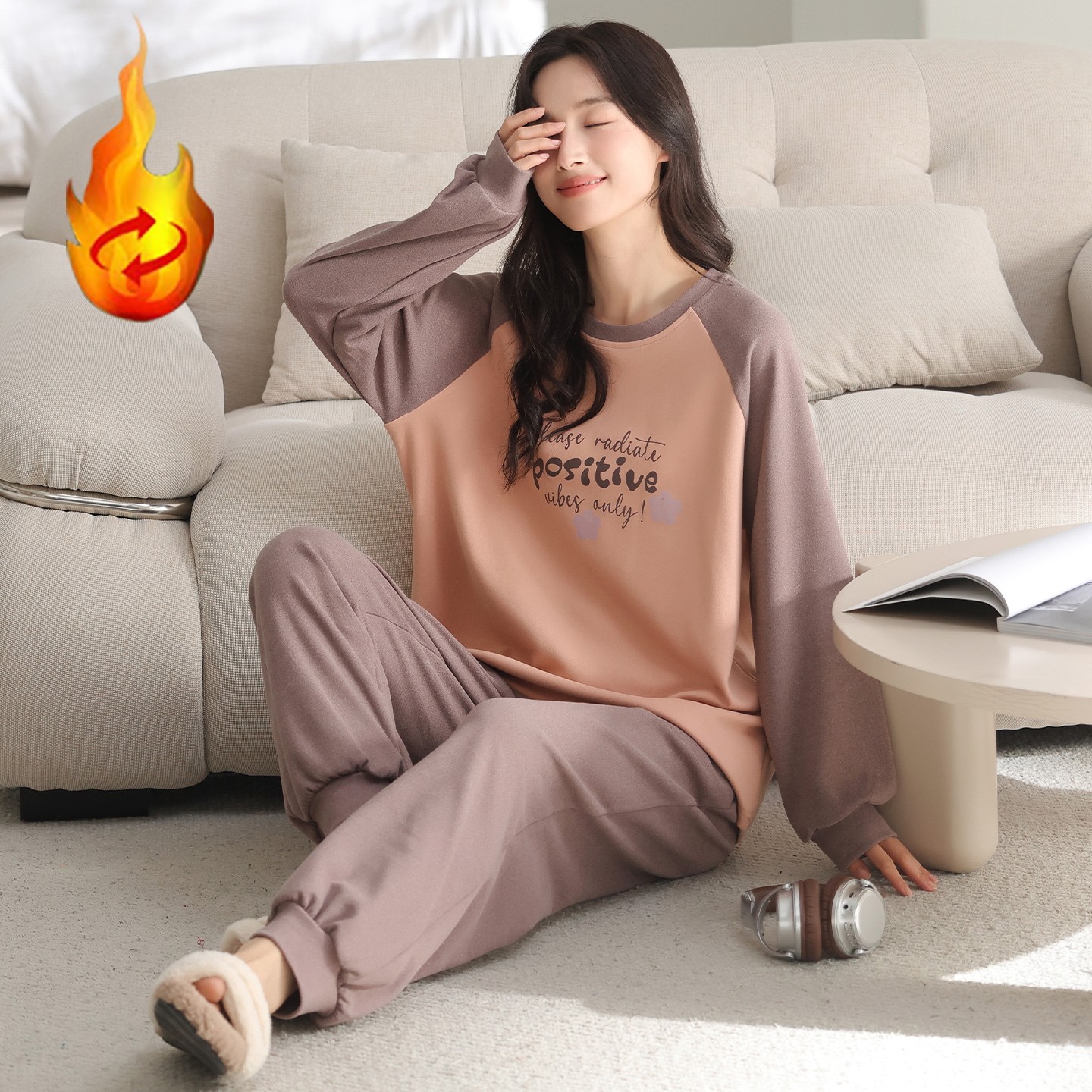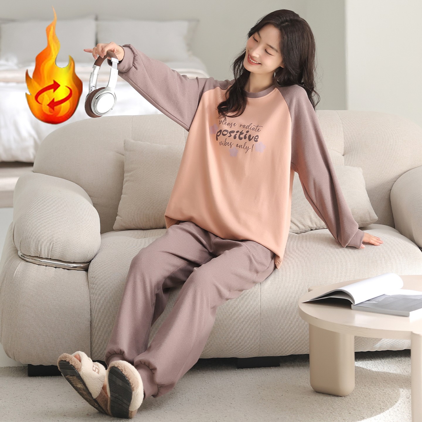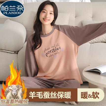 羊毛绒睡衣女士德绒保暖春秋冬季长袖套头束口运动风家居服可外穿