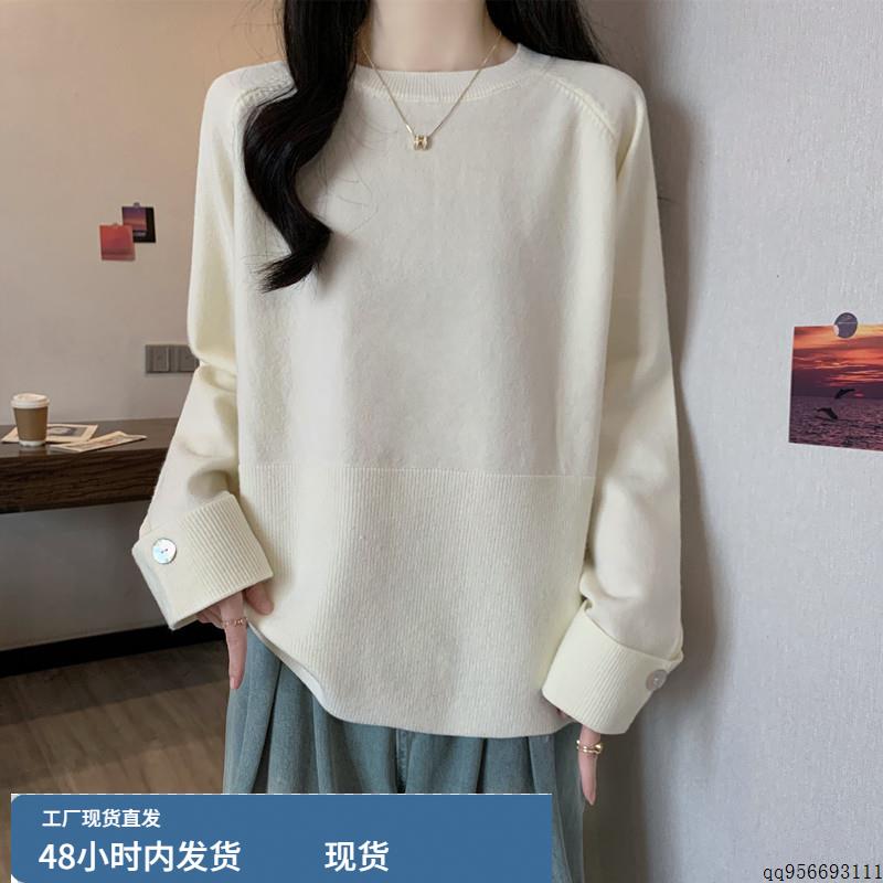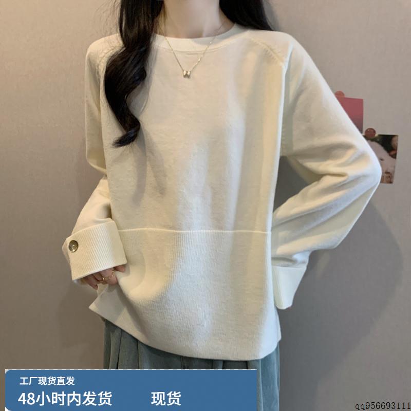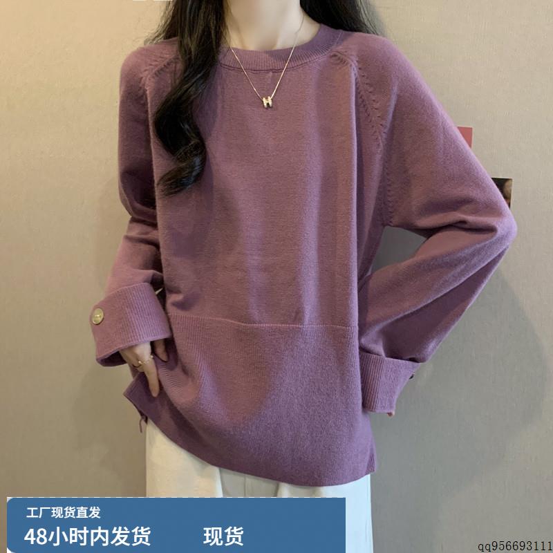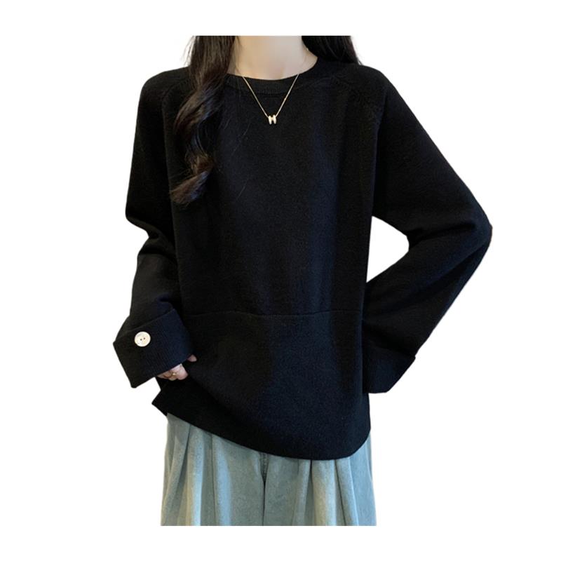 黑色圆领慵懒风套头针织衫毛衣女秋冬大码胖mm宽松显瘦打底衫上衣