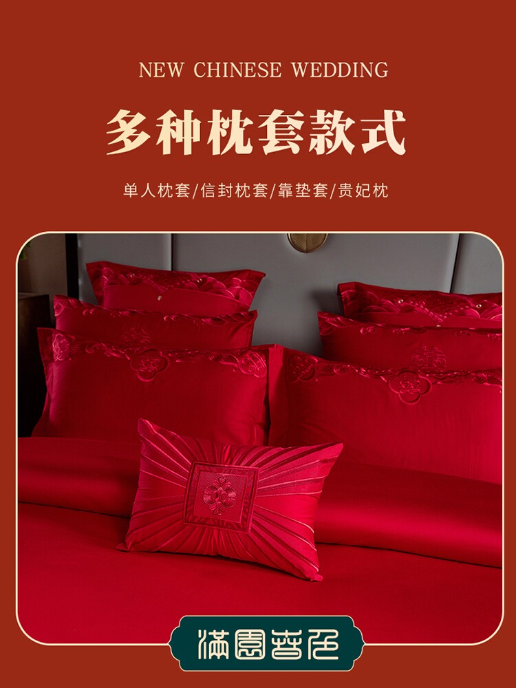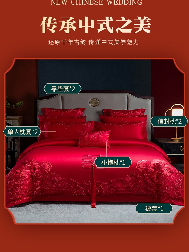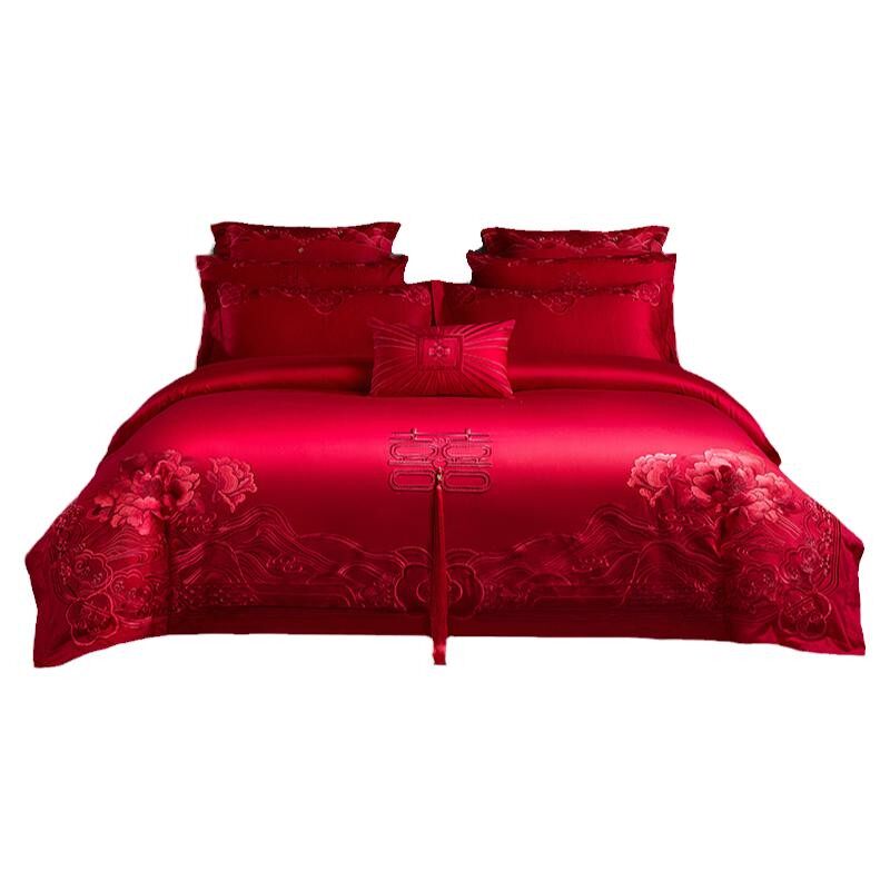 水晶家纺旗舰店正品婚庆四件套全棉喜庆结婚床品纯棉大红床单被套