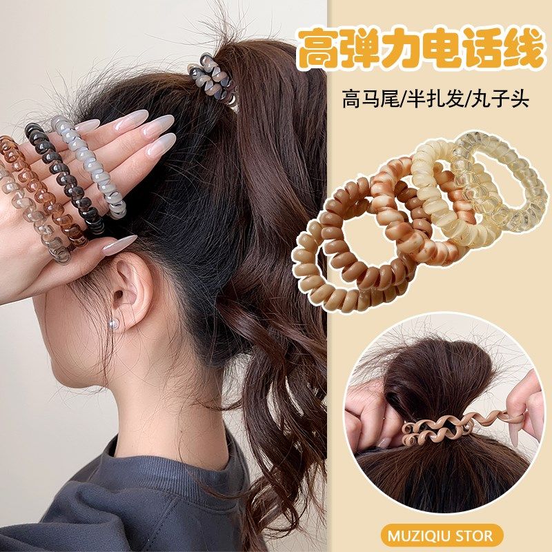 电话线发圈女橡皮筋高弹力无痕耐用扎头发头绳夏季高马尾发绳发饰