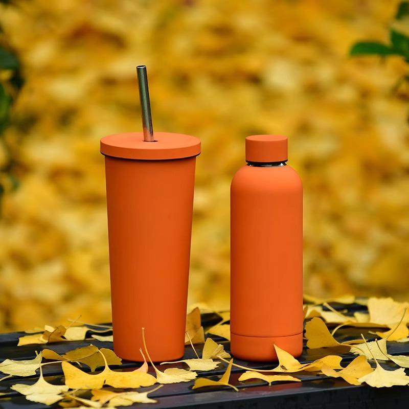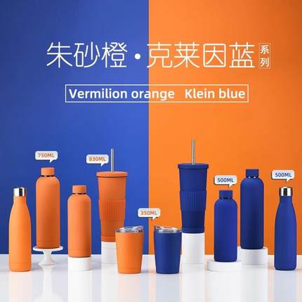 简约户外运动水杯克莱因蓝系列不锈钢水杯时尚橙色奶茶咖啡杯套装