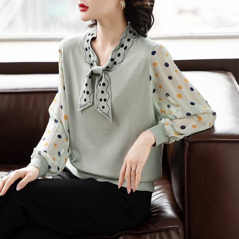 妈妈春秋装长袖打底小衫50岁中年女装洋气雪纺上衣中老年针织T恤