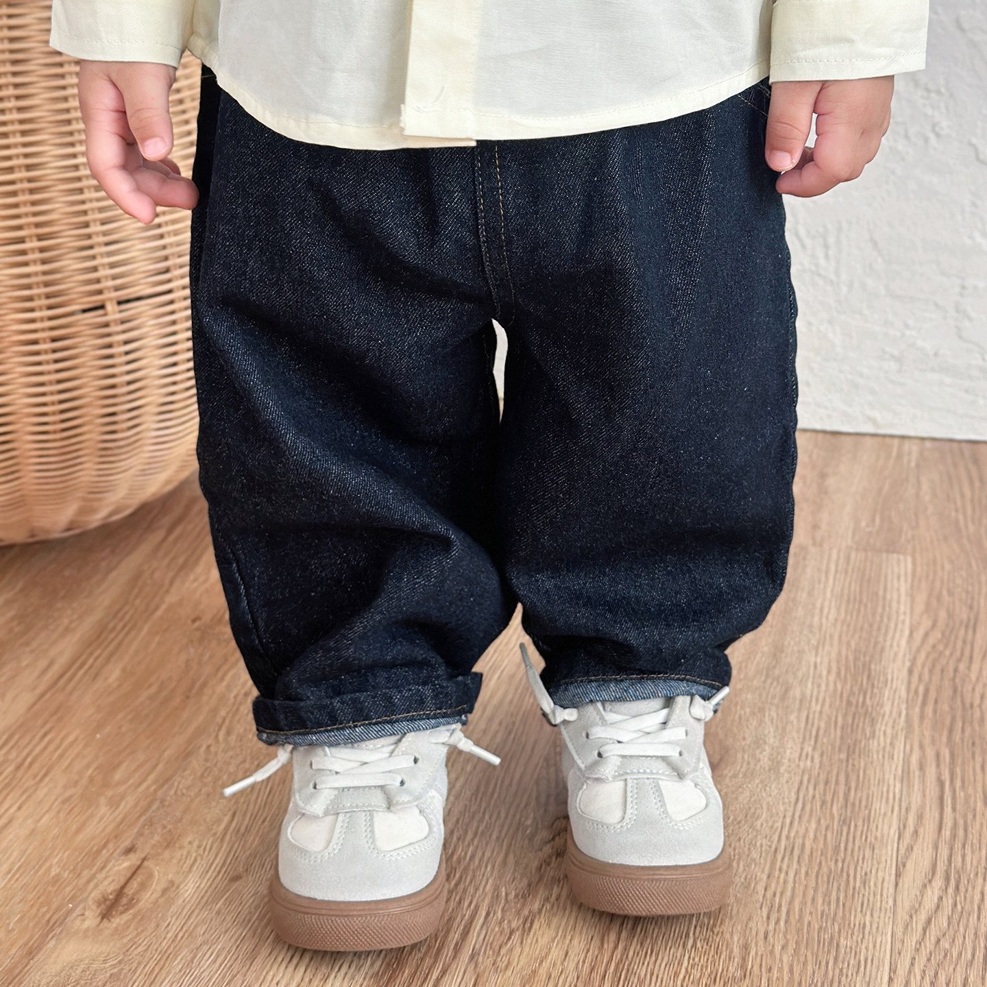 日系春秋儿童套装男宝宝刺绣长袖衬衫百搭牛仔裤女童韩版洋气外穿