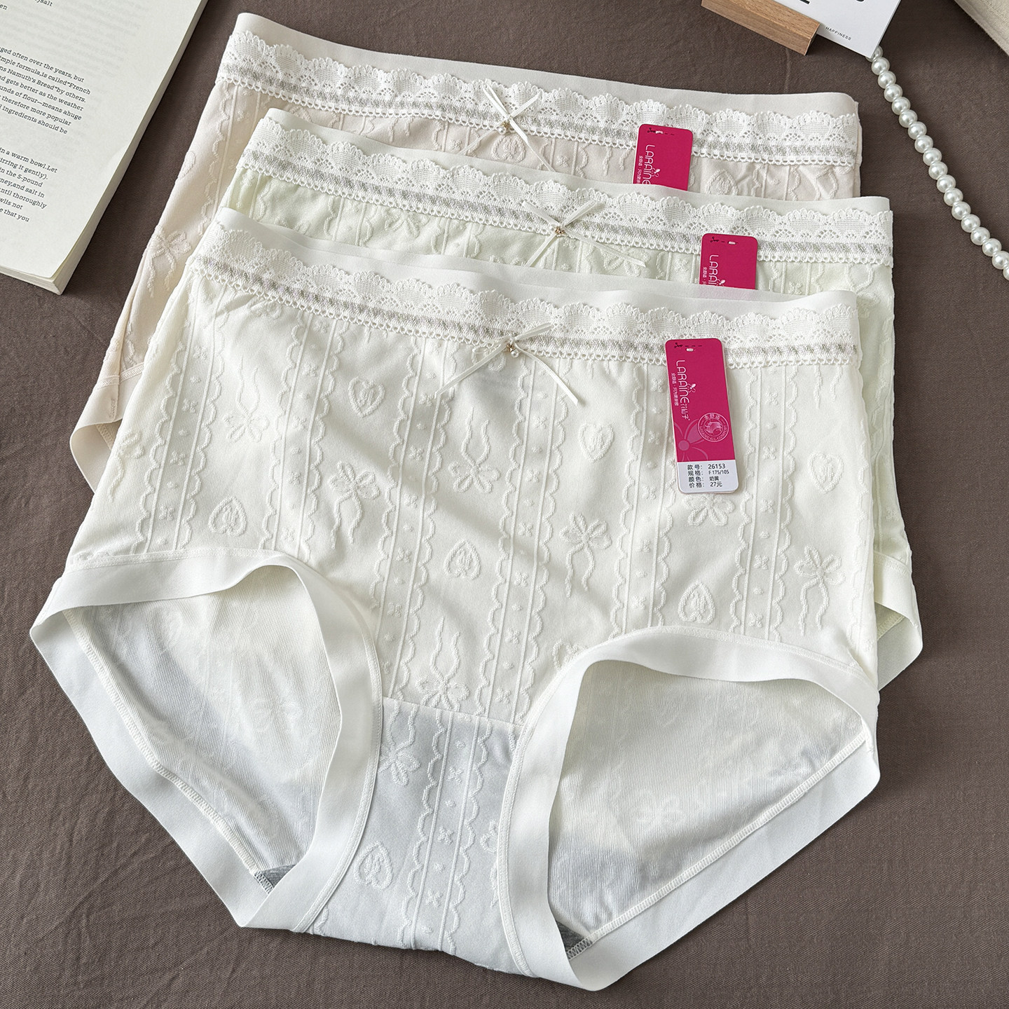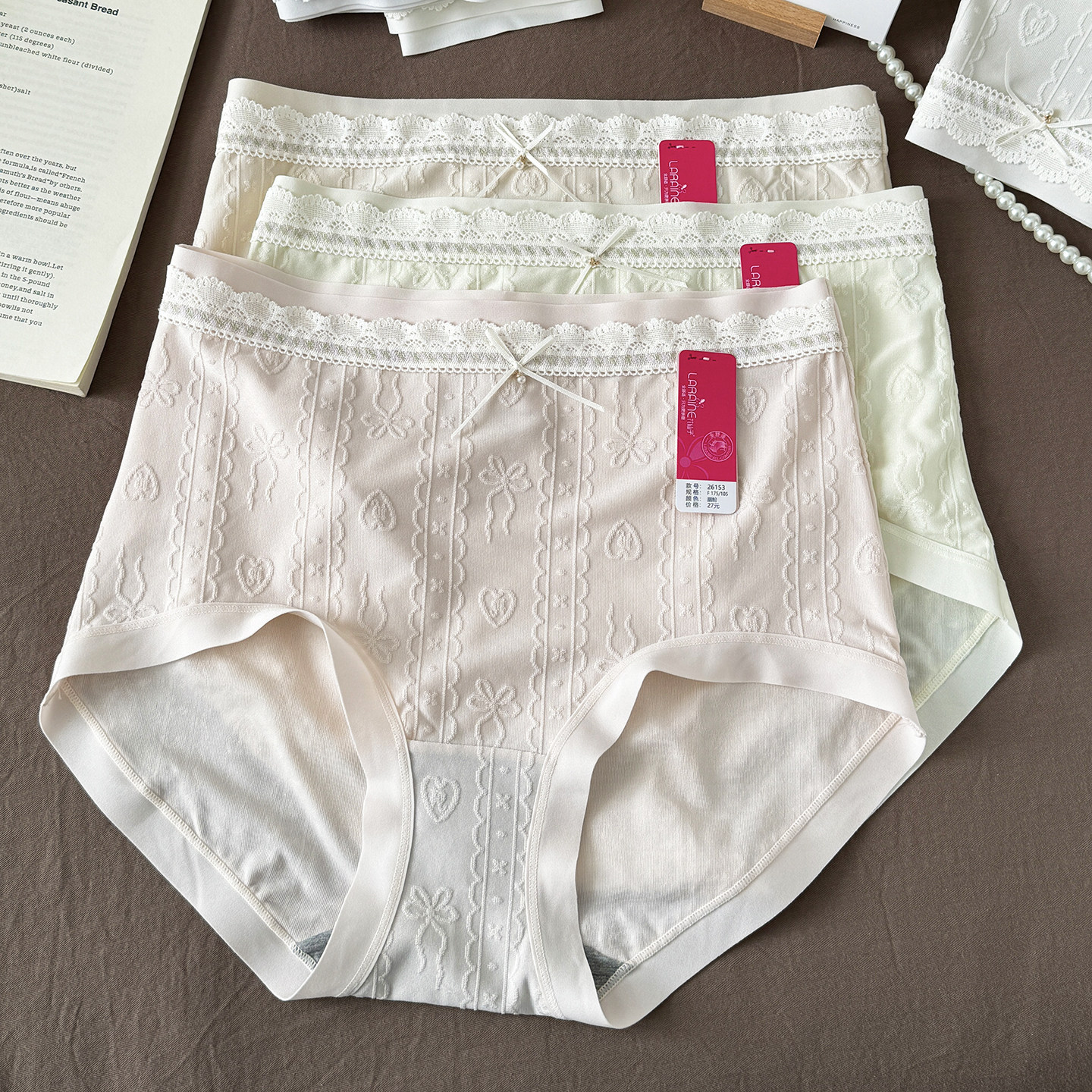 26年春款花仙子内裤女士高腰蕾丝三角裤棉感冰丝提花10A抗菌大码