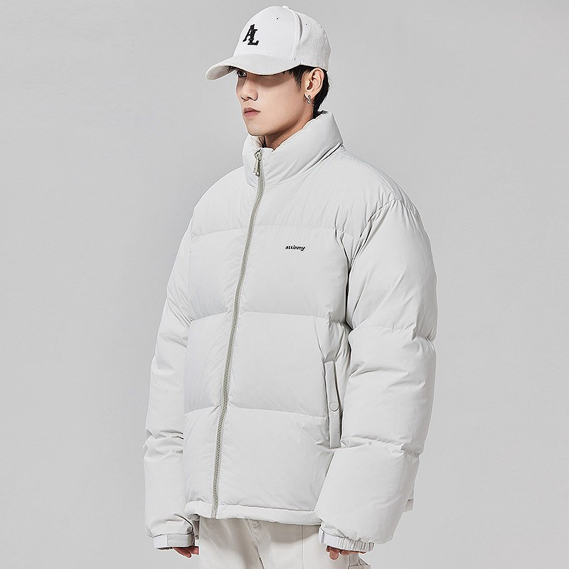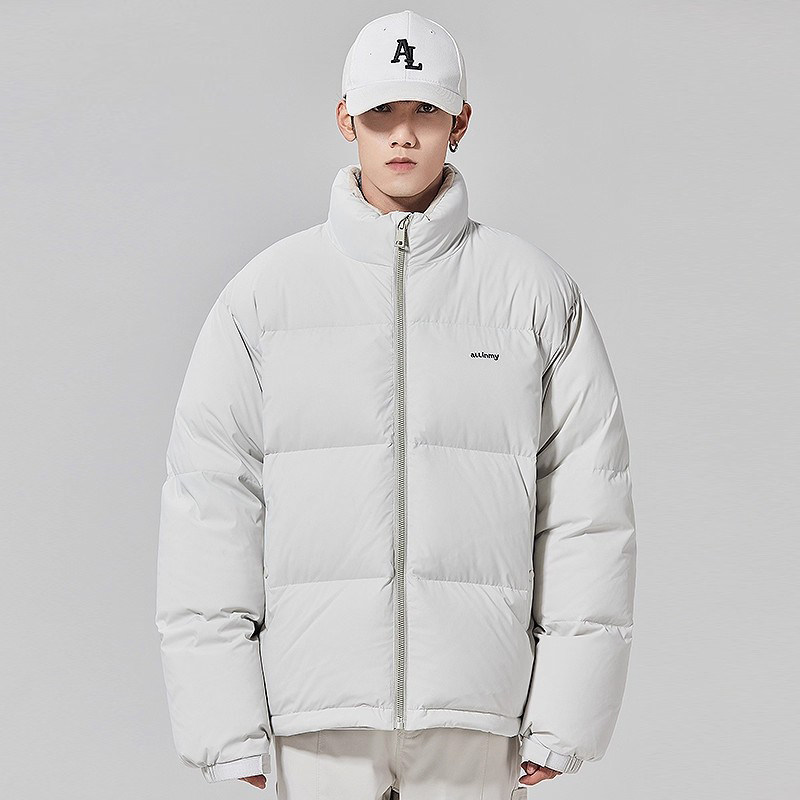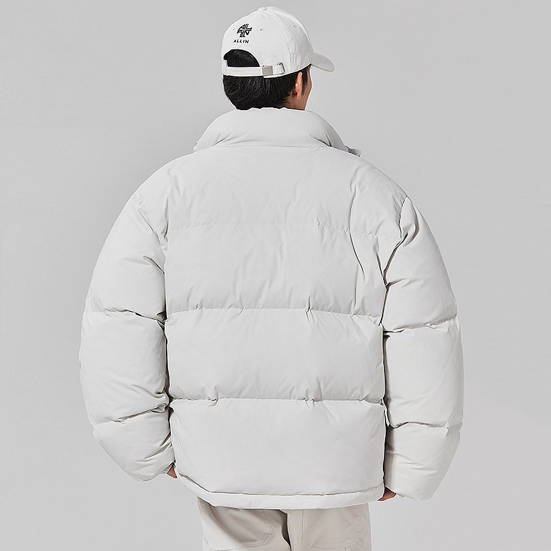 ALLIN 白色鸭绒羽绒服男冬季潮牌加厚保暖面包服宽松立领情侣外套