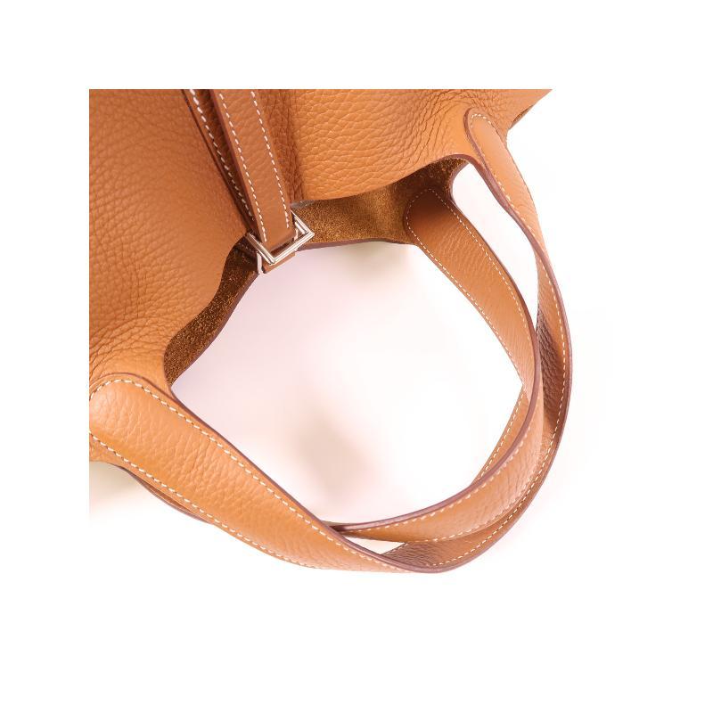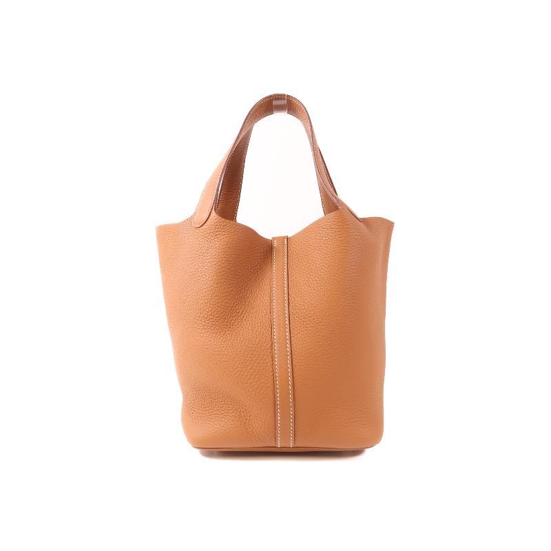 中古Hermes爱马仕女包A级95新Picotin MM菜籃子牛皮手提包棕色HK
