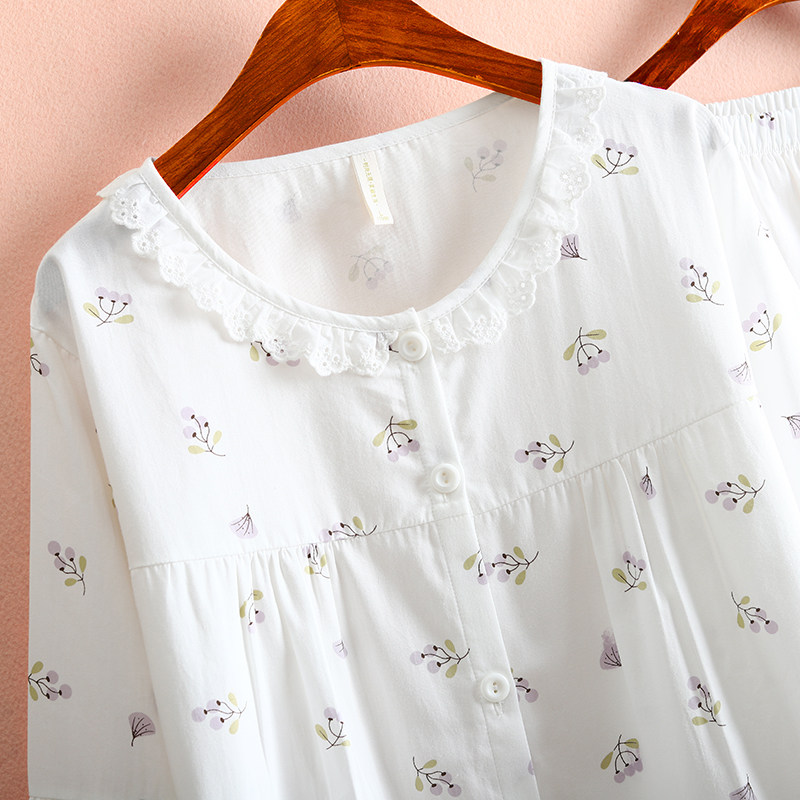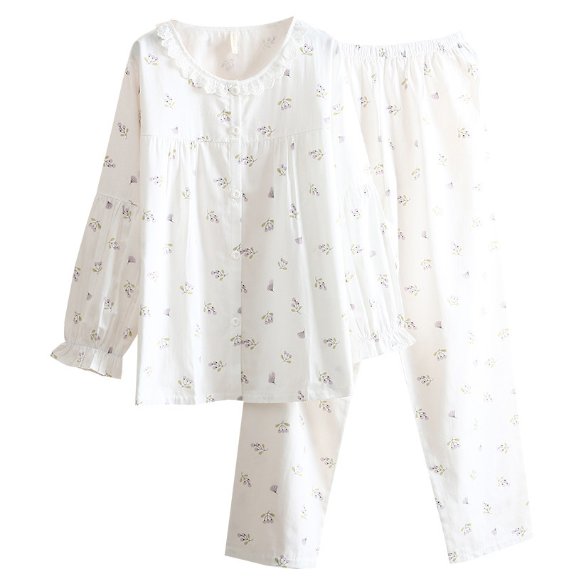 超美小碎花100%全棉斜纹布睡衣女春夏薄款长袖公主风泡泡袖家居服