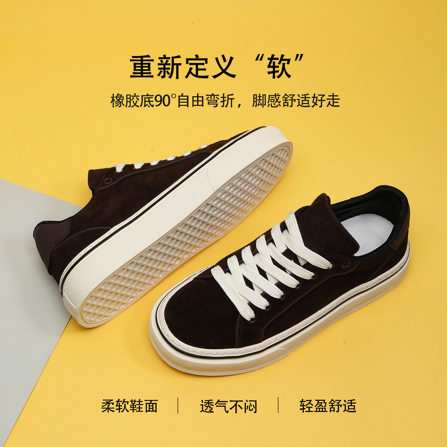 欧洲站男鞋2025新款秋冬真皮休闲鞋男厚底时尚复古反绒皮板鞋男款