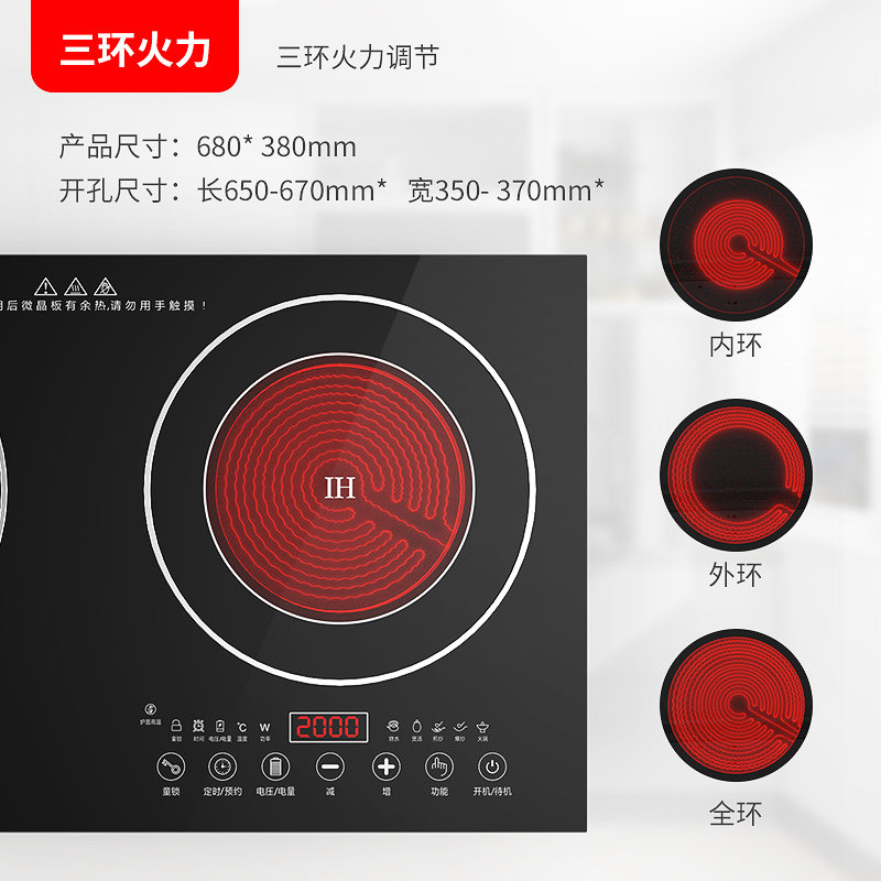 美恺双灶电磁炉嵌入式双头电陶炉台式一体灶家用爆炒智能大功率