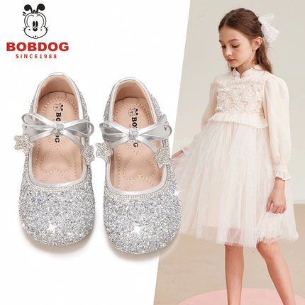 巴布豆真皮女童公主鞋水晶鞋儿童单鞋子2026春秋季新款礼服小皮鞋