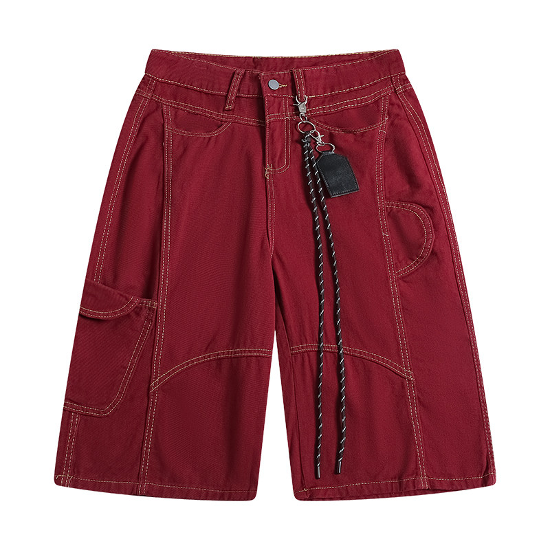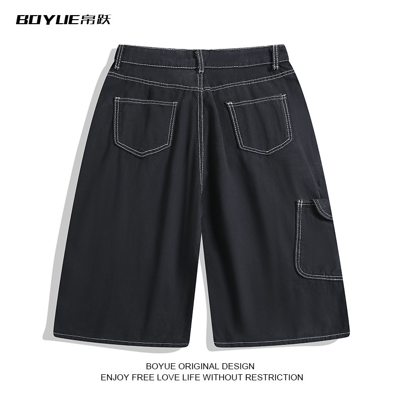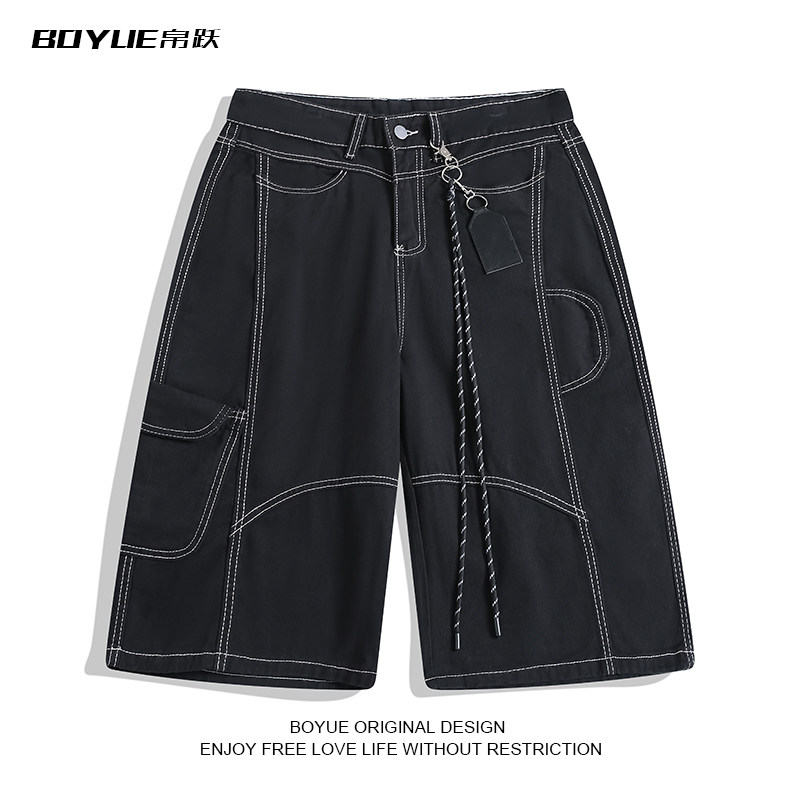 BOYUE帛跃美式复古解构明线多口袋工装短裤男女小众设计感七分裤