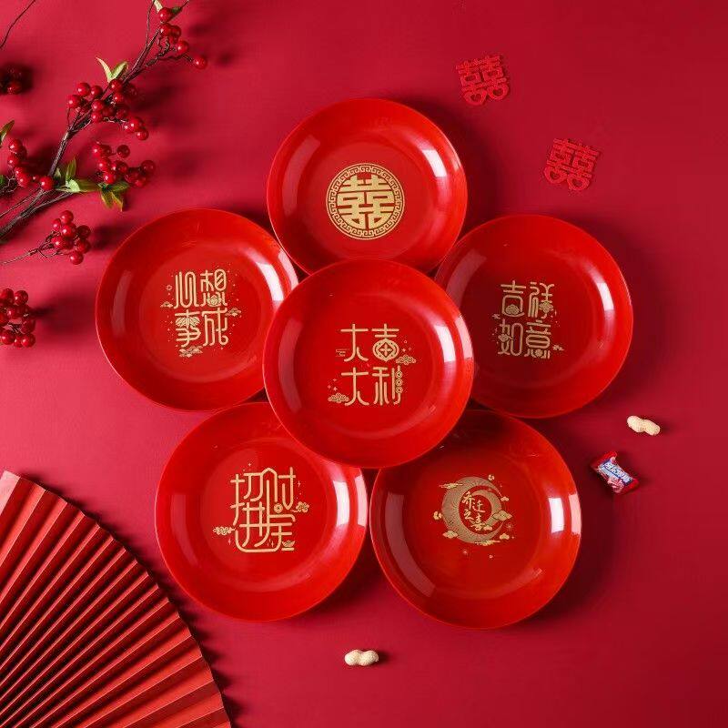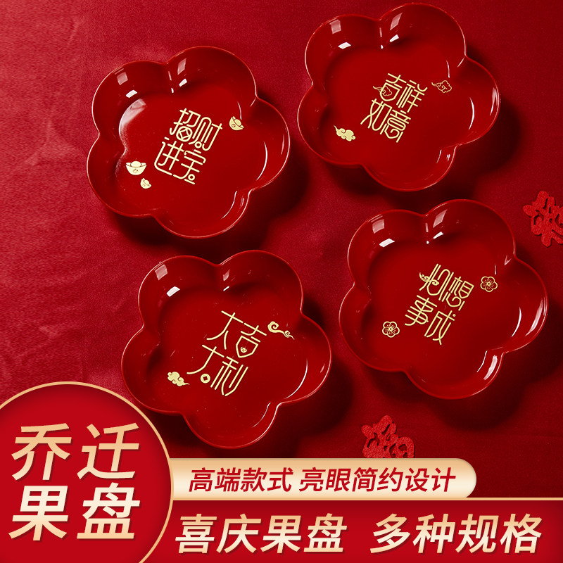 红色盘子拜拜专用供奉盘果盘佛具佛前贡品碟搬家新房茶几平底贡盘