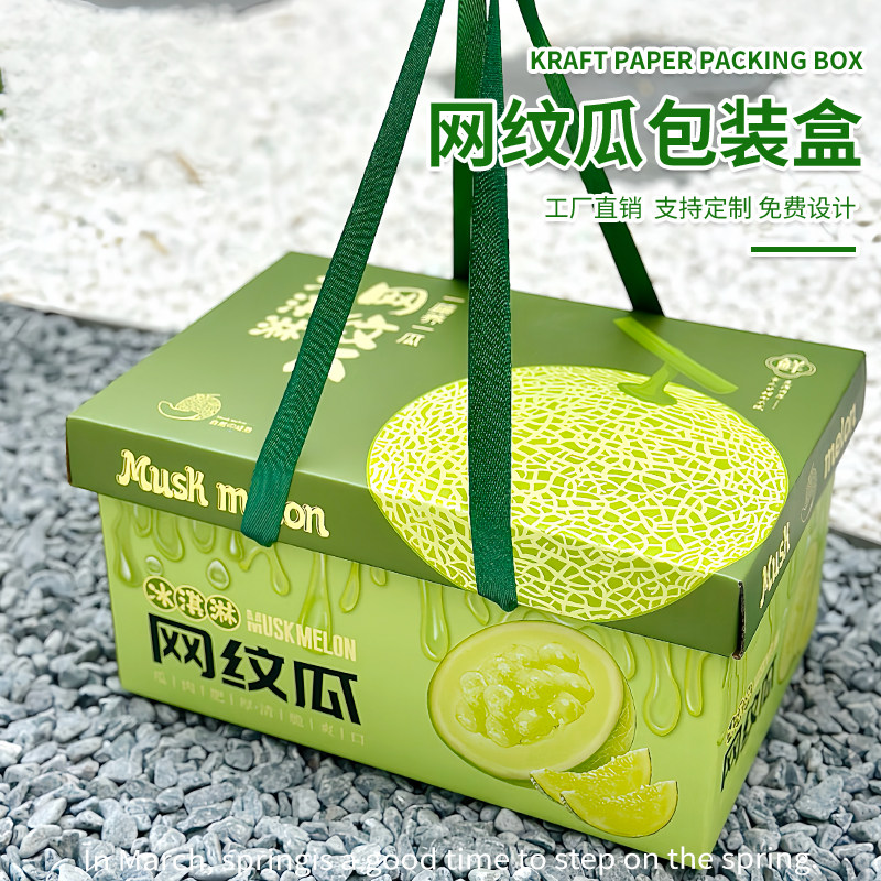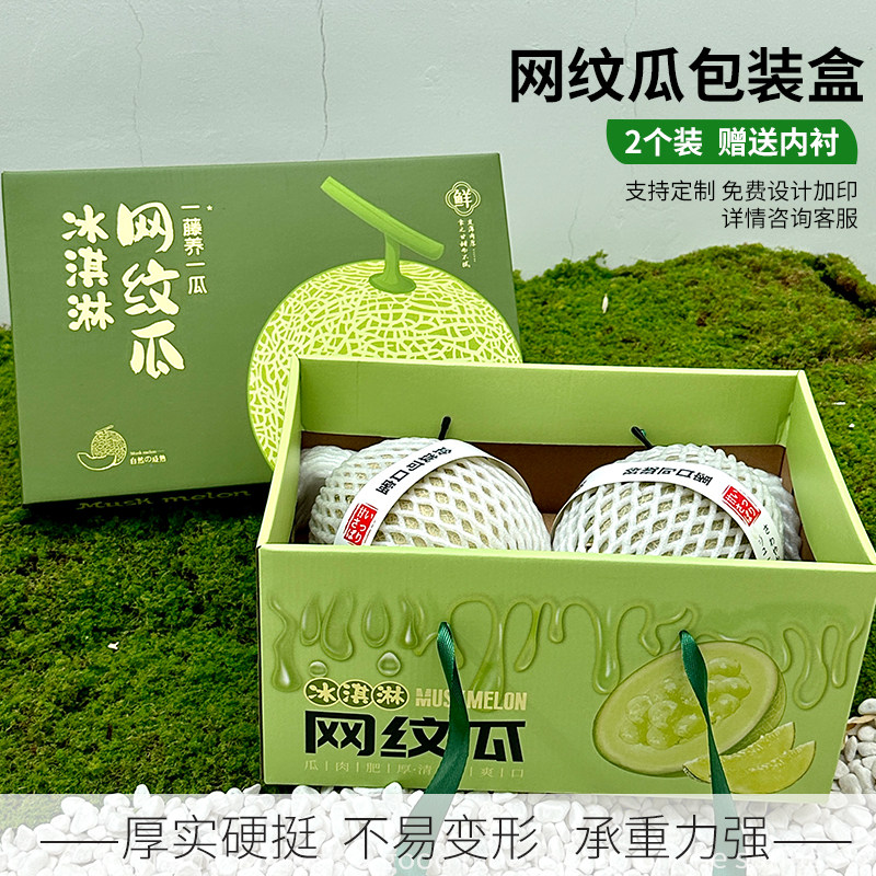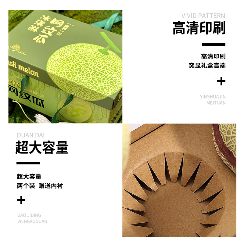 高档2粒装网纹瓜包装盒玫珑蜜瓜手提礼品盒哈密瓜礼盒空盒子纸箱