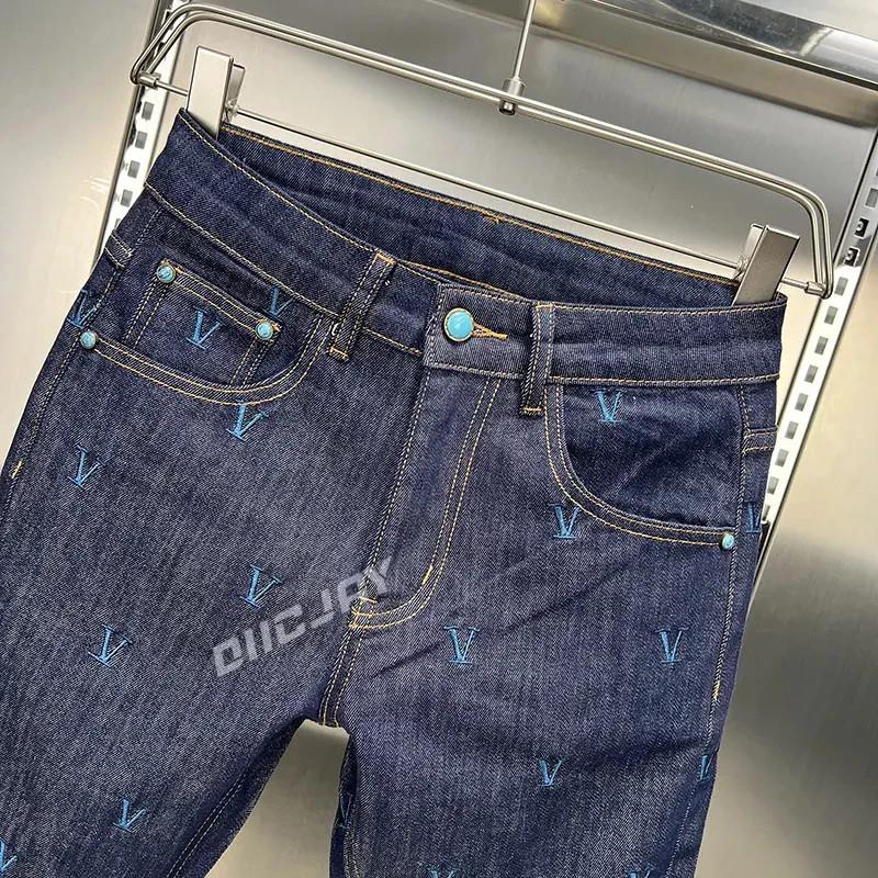 卓纳轻奢刺绣牛仔裤男士高端丹宁风秋冬季原色V不褪色修身小脚裤