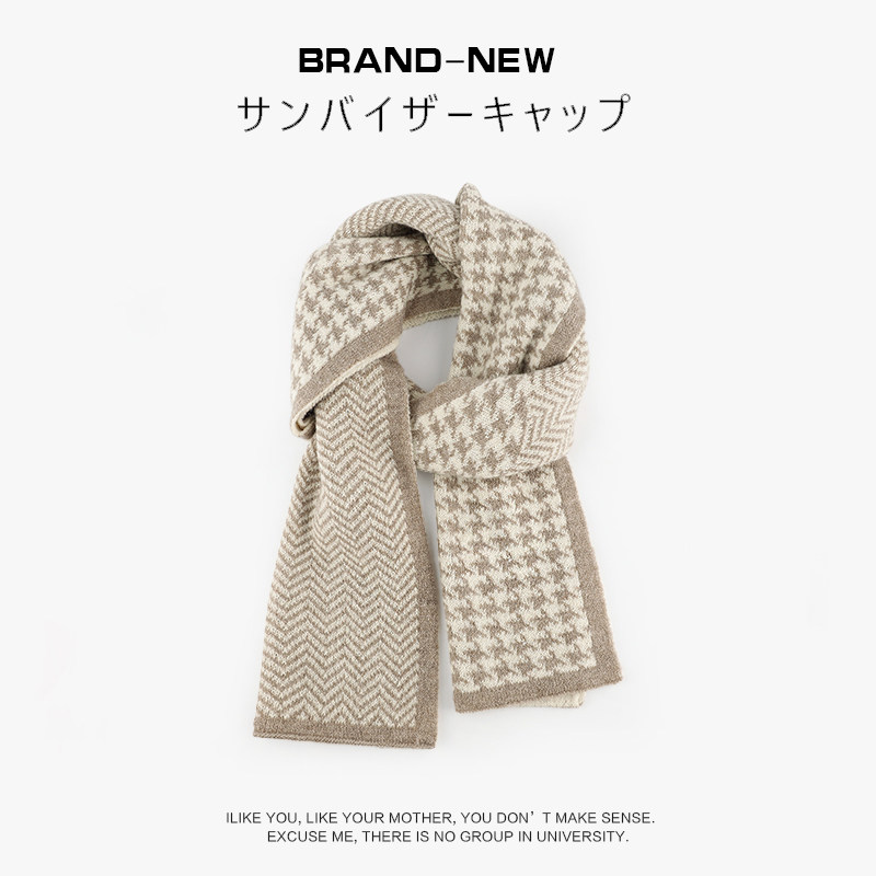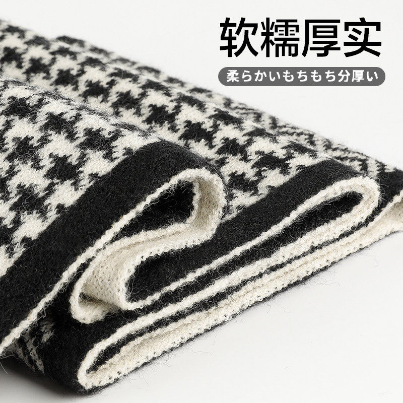 千鸟格围巾女冬季2025新款百搭毛线针织黑白格子围脖仿羊绒高级感