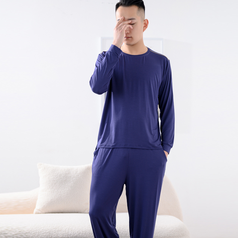 莫代尔睡衣男士休闲薄款冰丝家居服男款大码夏季长袖长裤夏款套装