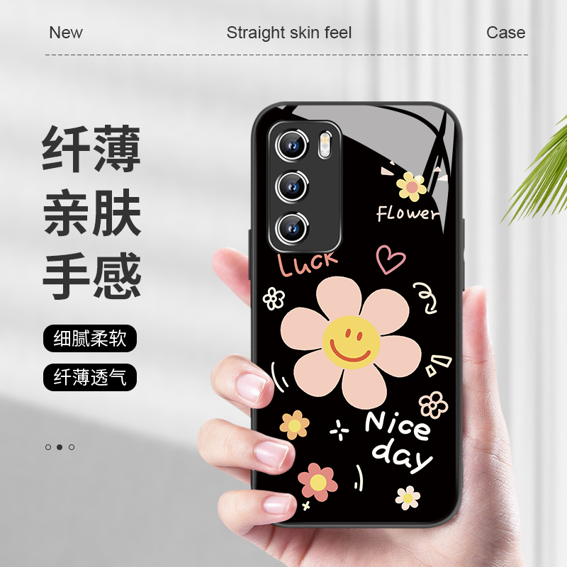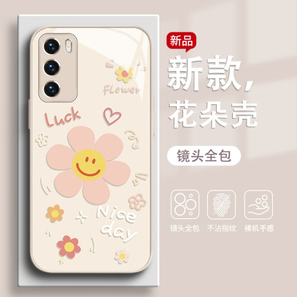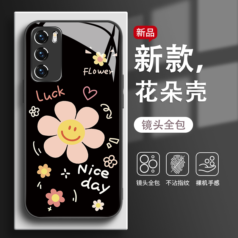 适用华为mate60pro手机壳小清新pura70花朵nova13新款ins风p50荣耀magic7小清新300简约x60玻璃80se90高级感