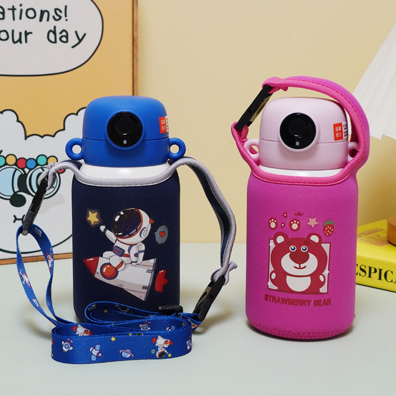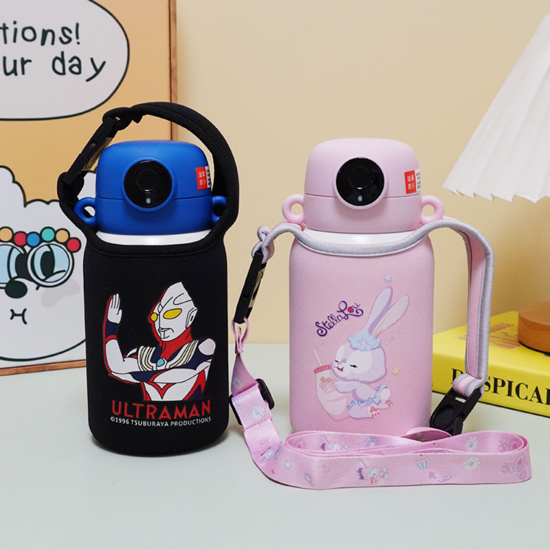 适用富光指纹儿童保温杯套卡通水杯套保护套550ml水壶套手提斜挎