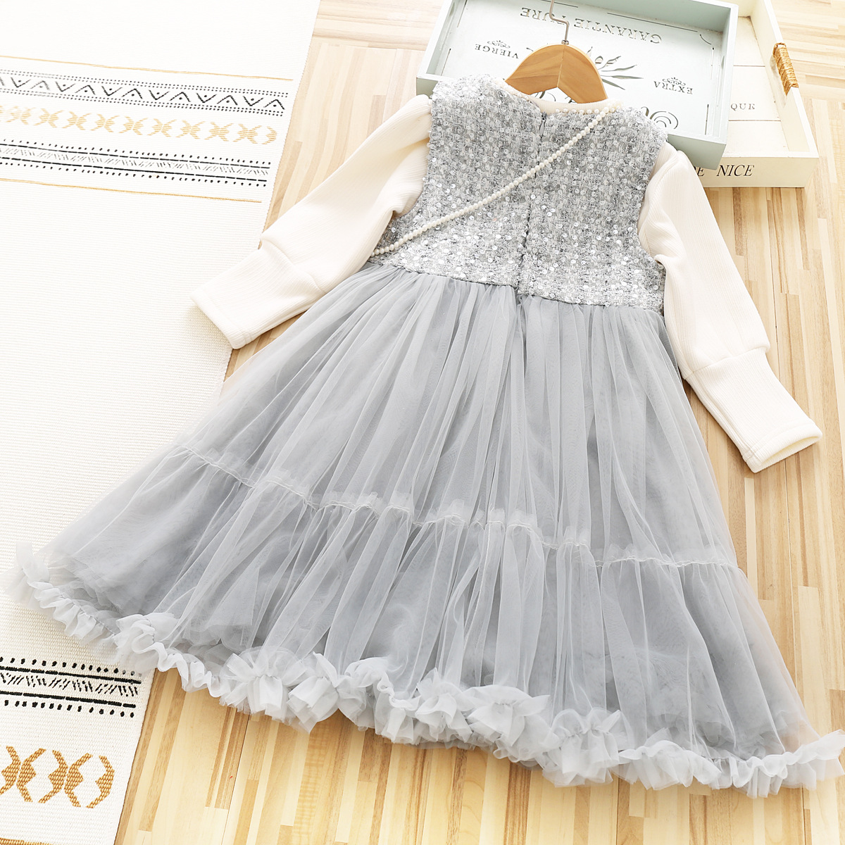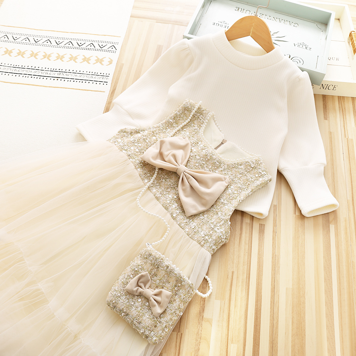 女童小香风公主裙女孩秋装连衣裙儿童冬季加厚加绒蓬蓬纱洋气裙子
