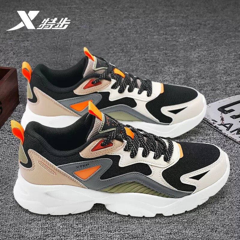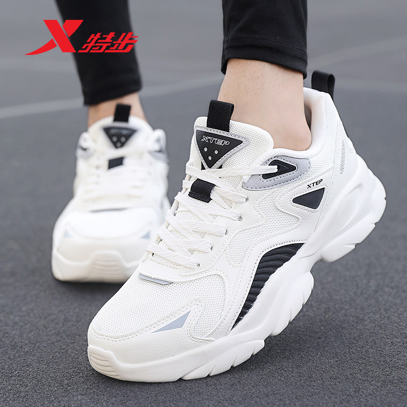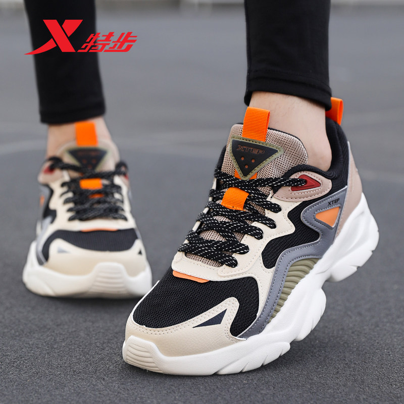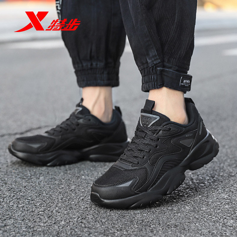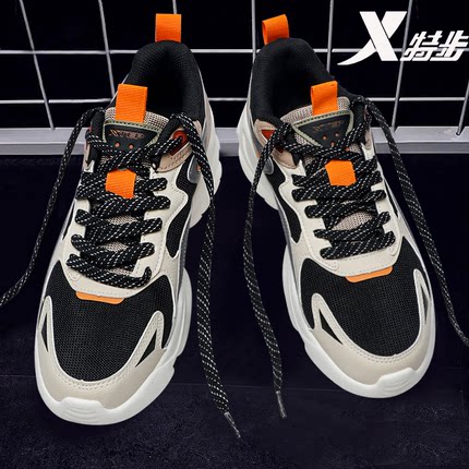 特步男鞋休闲运动鞋网面透气跑步鞋2025新款正品鞋子厚底老爹鞋男