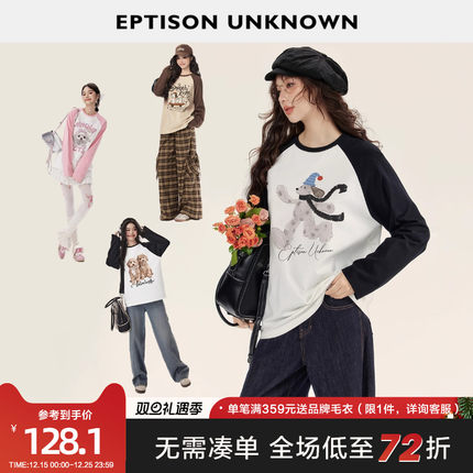 EPTISON长袖T恤女2025秋季新款可爱小狗印花插肩袖宽松纯棉上衣