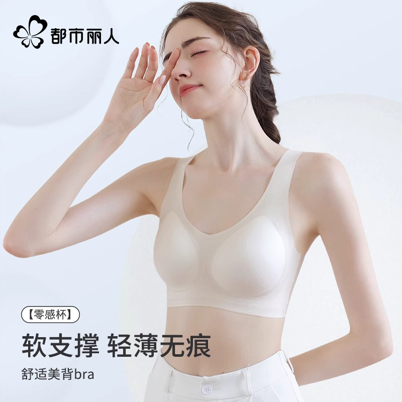 都市丽人凉感无痕内衣女聚拢小胸夏季薄款运动美背心式冰丝文胸罩