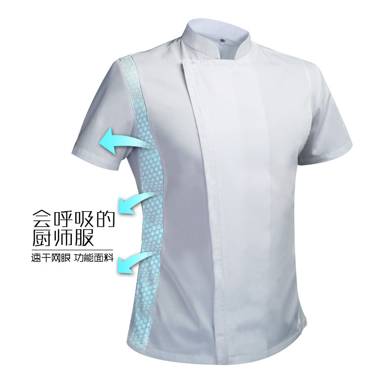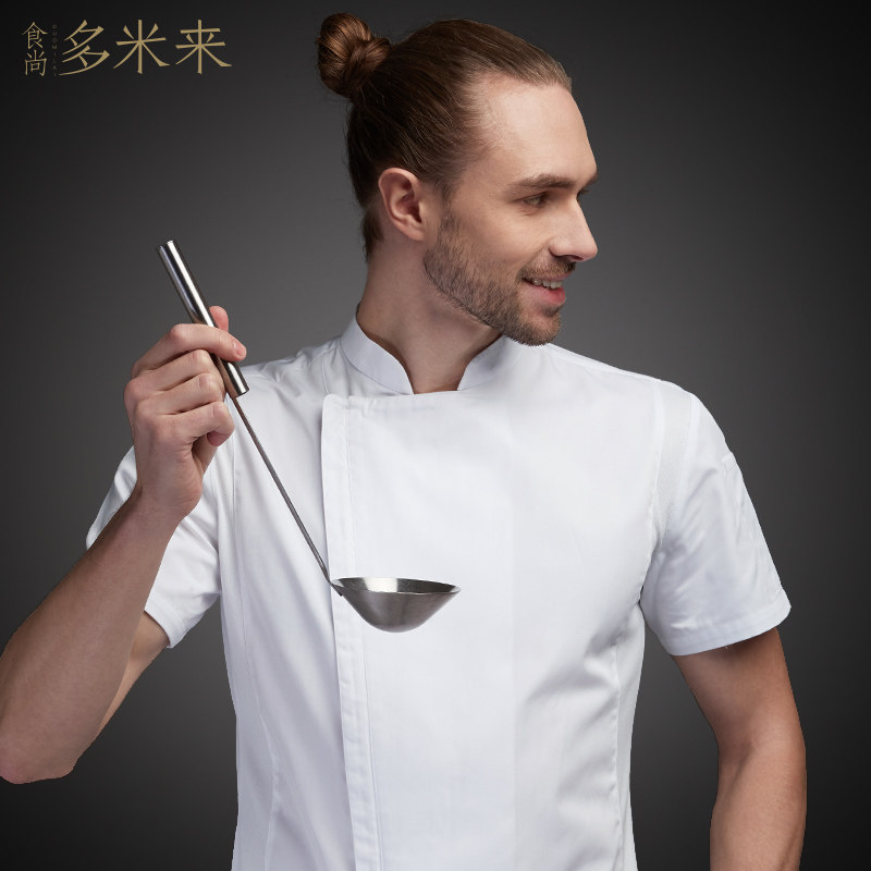 多米来厨师服男短袖夏装透气薄款西餐厨房衣服厨师工作服定制LOGO