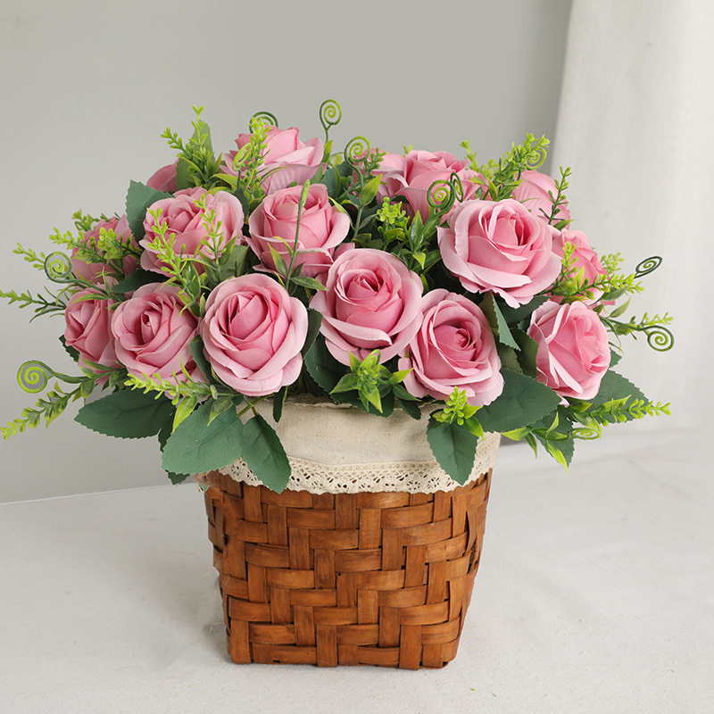 仿真花花束绢花6头保利玫瑰花假