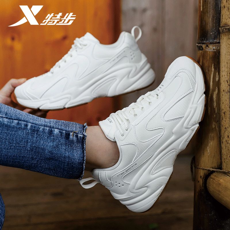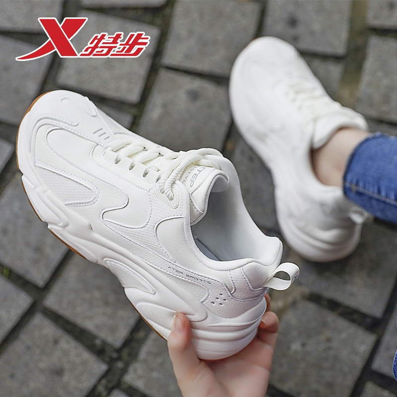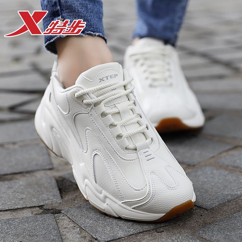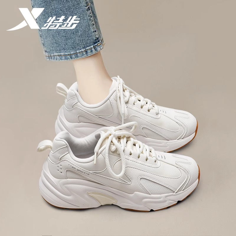 XTEP/特步跑步鞋女皮面老爹鞋