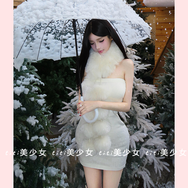 【TiTi美少女】纯欲风性感麻花抹胸针织裙保暖修身短款打底连衣裙