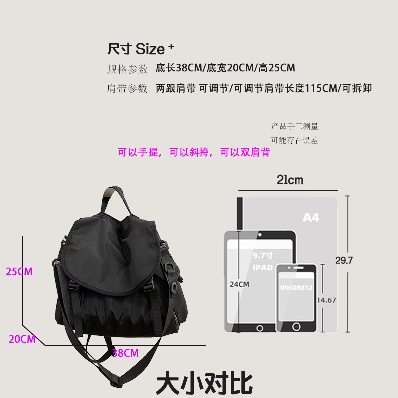 牛津布双肩包女2023新款时尚通勤轻便背包休闲运动骑行斜挎包两用